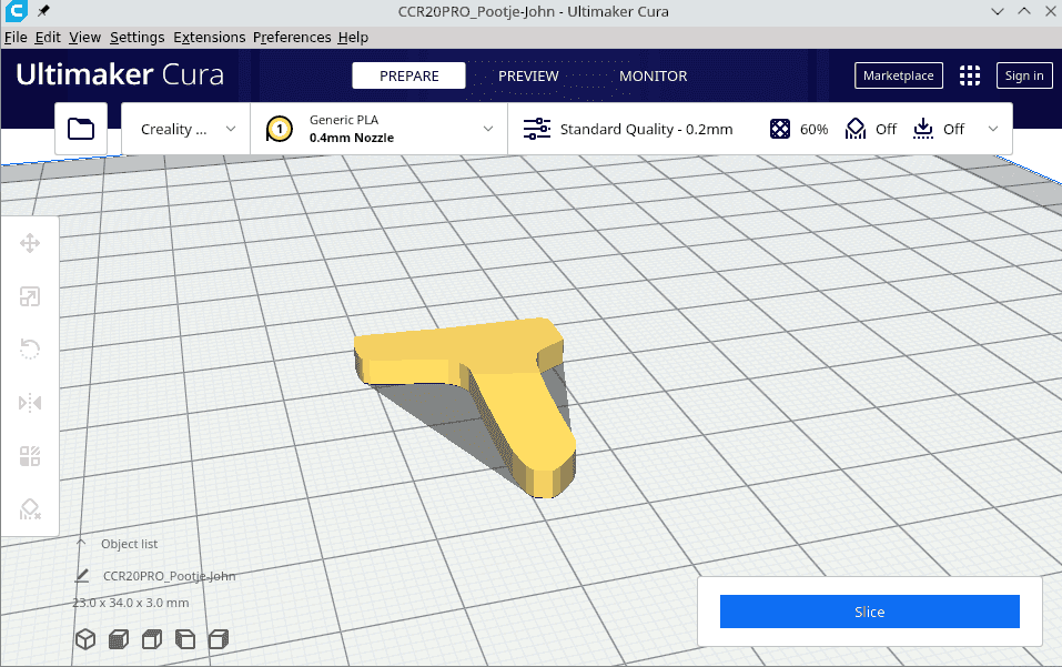 The STL file was then imported into Cura and at last printed on my Creality CR20 Pro. It took 10 minutes to print.