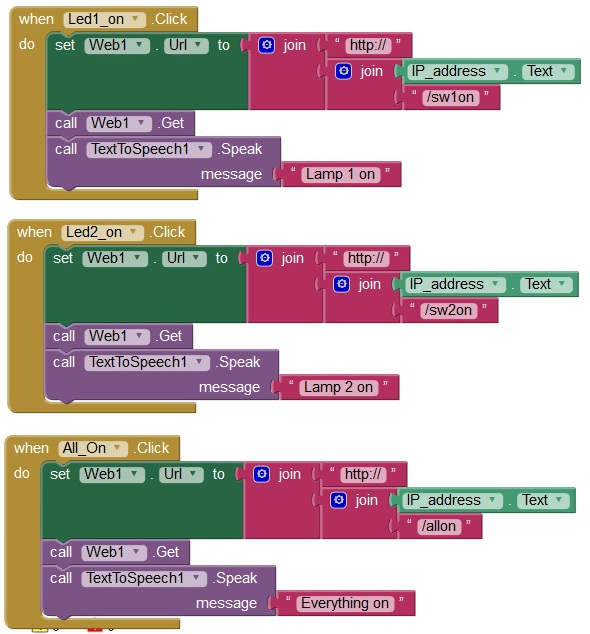 All blocks are similar exept for the command that is send through the web and the audible feedback.